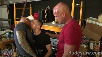 Nick Moretti and Chad Brock are beat after a long, hard day at work but Blue Bailey isn't going to let them go home until the two daddies double fuck him and he takes both of their loads in his sweet little hole.